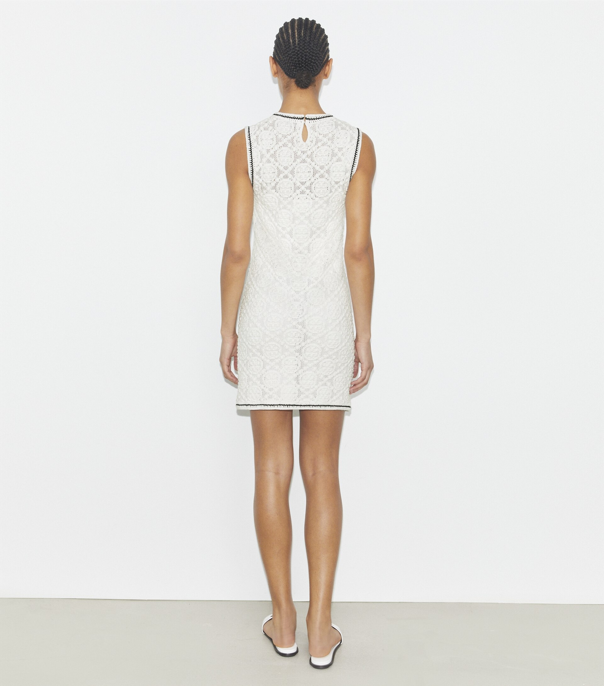 The tank dress is made of cotton pointelle woven with our signature T Monogram motif. Comfortable and chic, it is the perfect traveling companion.