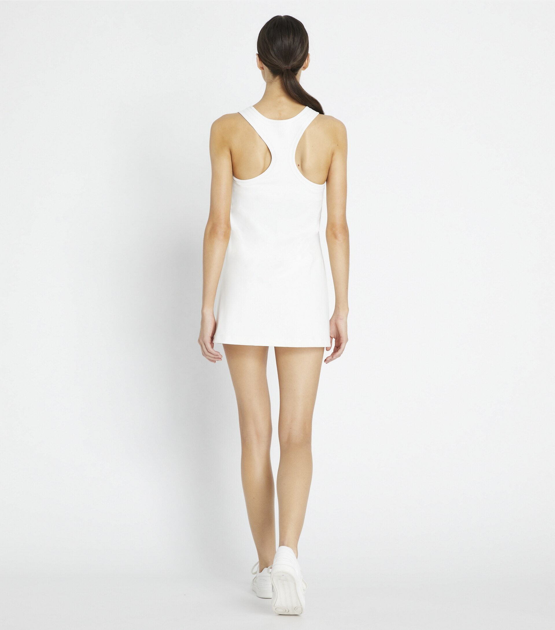 The side-slit tennis dress is uniquely designed for unencumbered movement on the court, featuring a racerback, built-in padded bra and leg slit. Crafted in Power Evo stretch jersey, the lightweight dress is soft and breathable — perfect for wearing in extra-warm conditions. Due to the high leg slit, pair it with our Seamless or Weightless bike shorts for coverage.