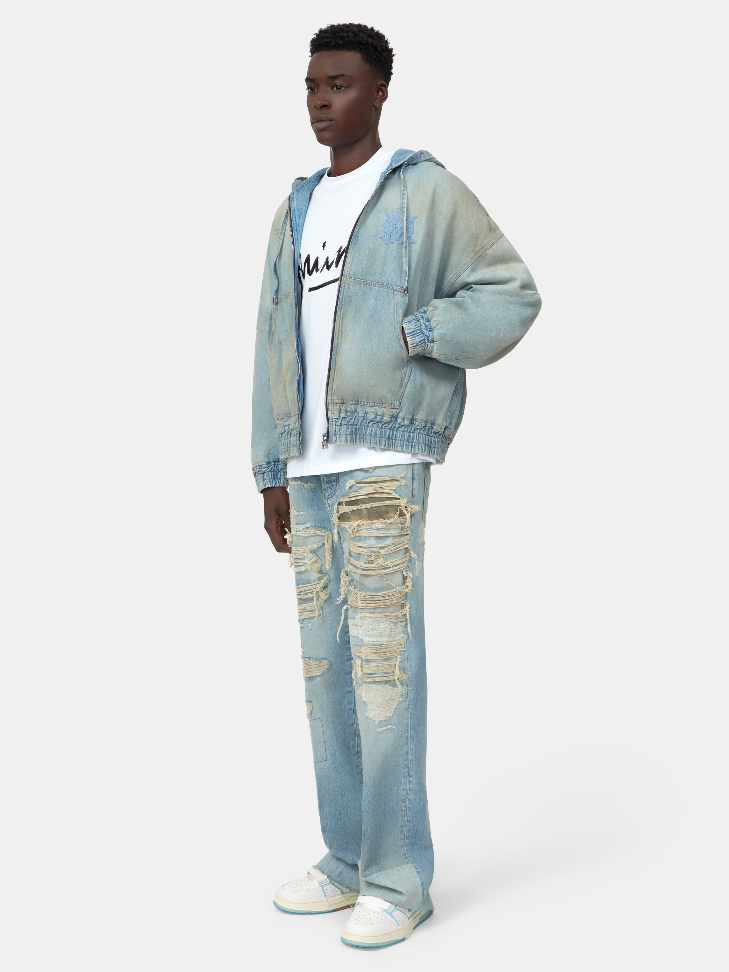 THIS GARMENT HAS UNDERGONE A SPECIAL PROCESS WHICH RESULTS IN INTENTIONAL VARIATIONS OF SHADING AND COLOR, AND ADD TO THE PIECE'S UNIQUE CHARACTERISTICS. THIS MAY LEAD TO BLEEDING OR DYE TRANSFER. PLEASE USE CAUTION WHEN WASHING OR DRY-CLEANING THIS ITEM.