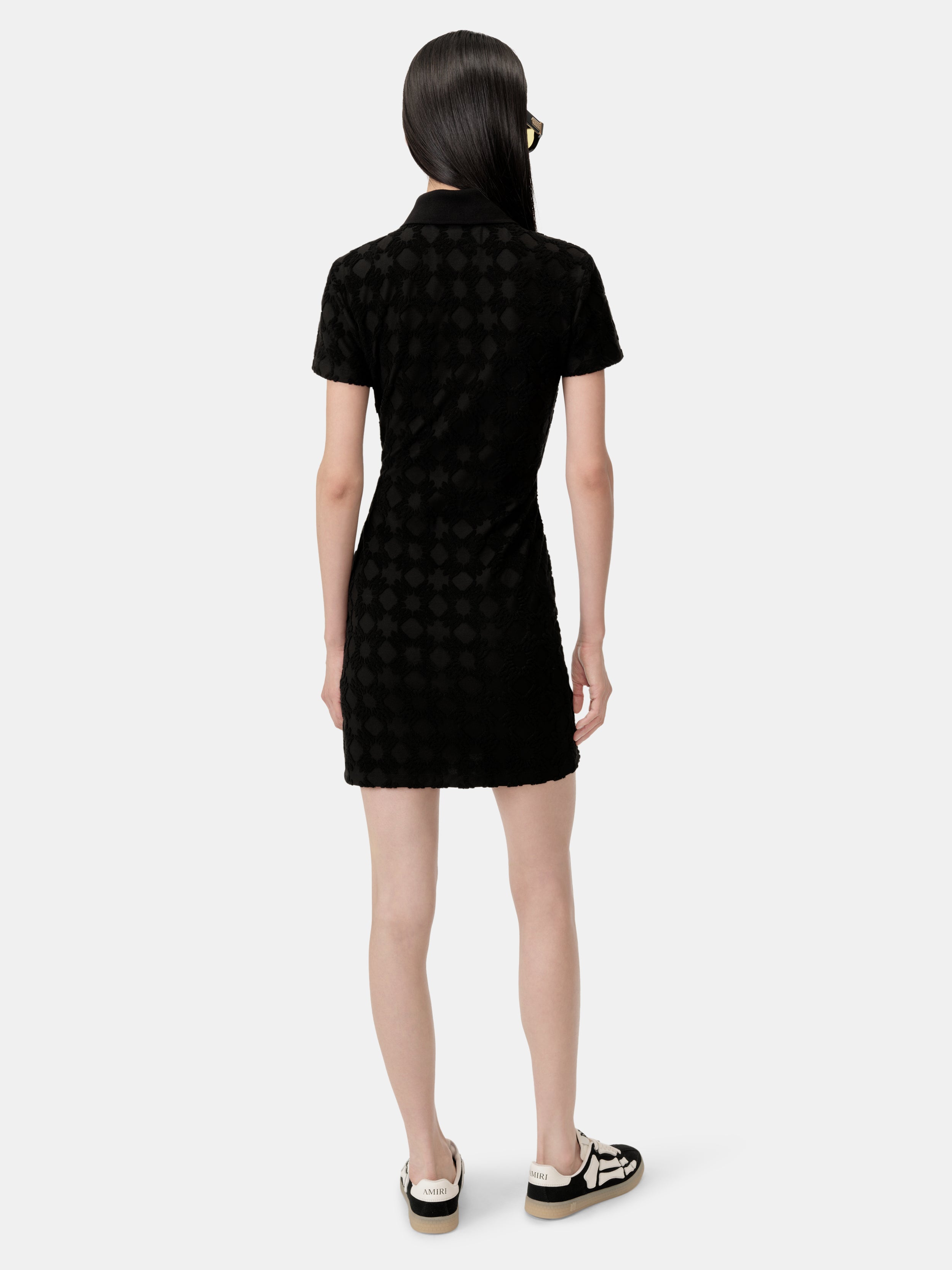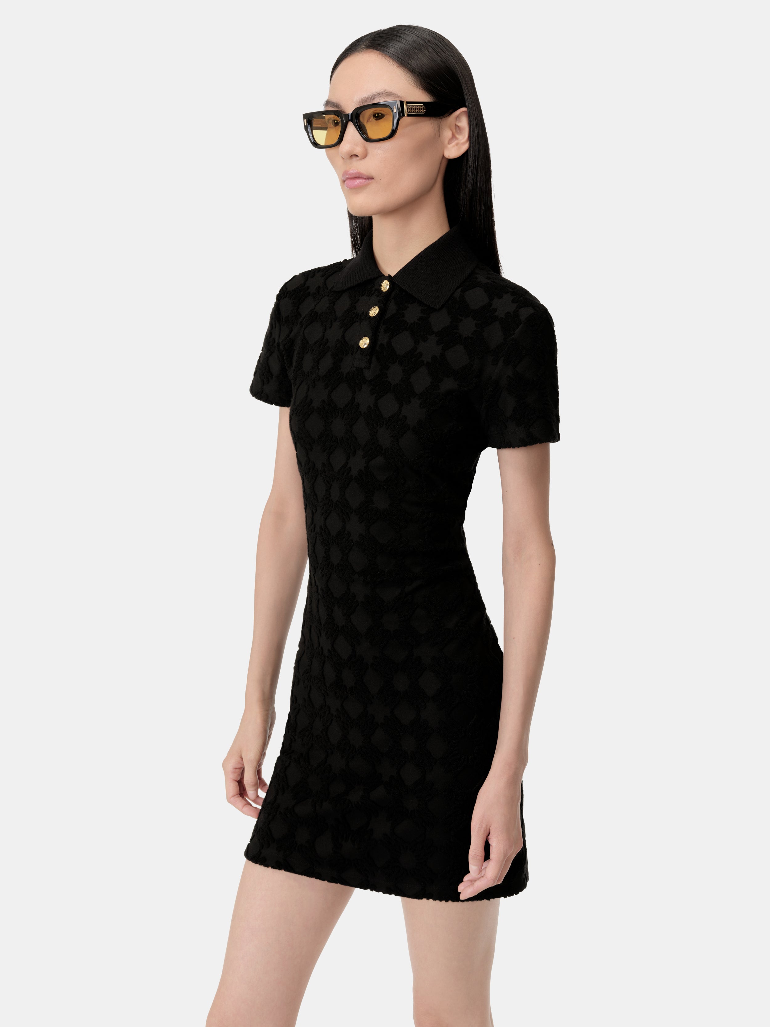 The house signature MA Quad monogram is revived in plush toweling for Pre-Fall 2025. The MA Quad Toweling Dress is designed in a mid-thigh length and finished with three-button closure.