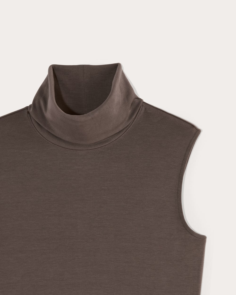 A dress that puts the versatile into style, its maxi length, folded turtleneck, sleeveless silhouette, and body-skimming fit is the kind of effortless you need in your life. Made with our Butterknit fabric, it has a super soft, drapey feel with a little sheen. Wear for work, brunch, nights out, or hangs at home, this dress just wants to make you look good doing it all.