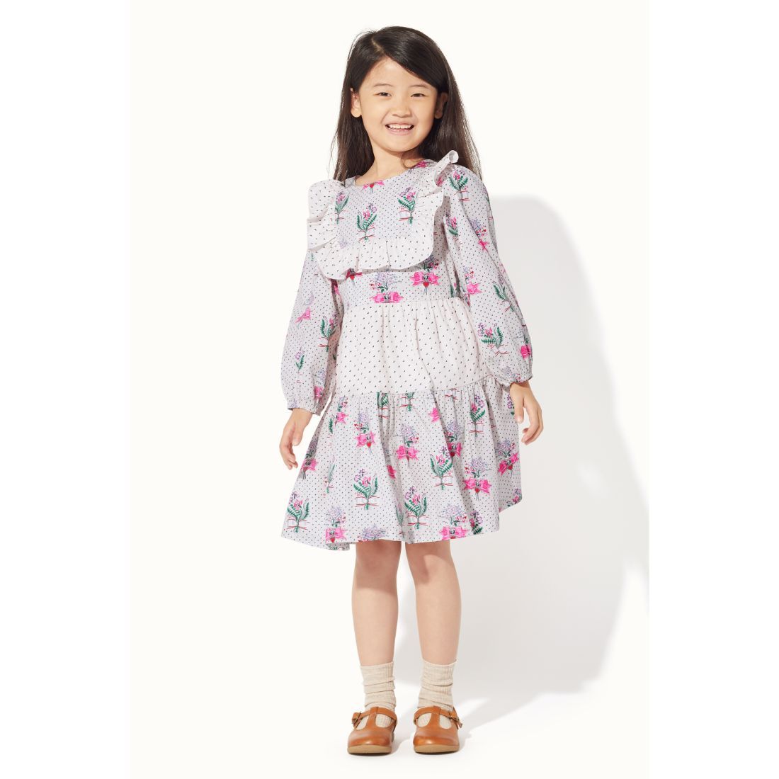Tea Rose Trixie Frill Long Sleeve Dress (1-10 Years)