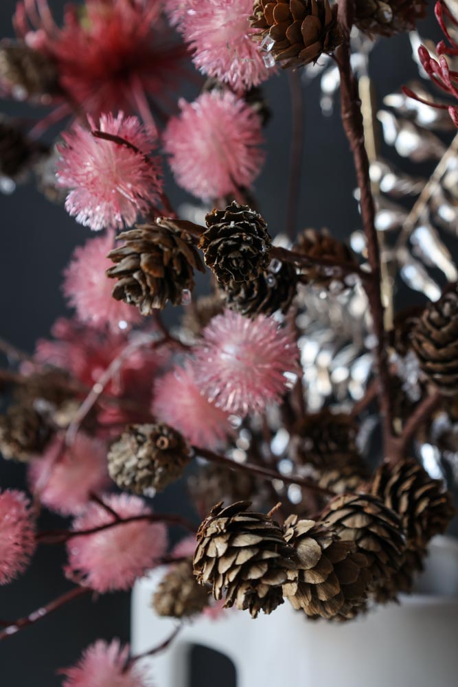 The ideal accessory to welcome in the festive season, curate a showstopping floral arrangement for the centre of your Xmas tablescape or mantelpiece with this faux Christmas tree branch styled with the Faux Pinecone Branch Stem and the Faux Pompom Flower Stem. Alternatively, display this faux branch on its own draped across a windowsill or shelf for little touches of festive magic dotted around your home.