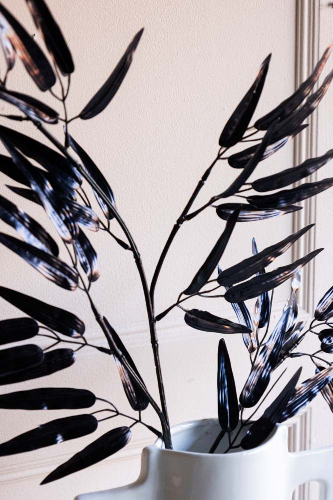 Say hello to sleek sophistication with our Ornamental Bamboo In Black. This chic faux bamboo, dressed in a shiny black finish, is the ultimate versatile décor piece. Amazing for adding a modern twist to your space, it easily blends the natural charm of bamboo with a stylish, contemporary edge. Whether you pop one in a vase for an abstract feel or bunch a few together for a bold statement, this bamboo knows how to make an impression. The glossy black shade is the definition of cool, matching just about any interior style whether that’s industrial and edgy or sleek and modern. So, why settle for ordinary when you could elevate your décor game with this versatile, fun and oh-so-chic Ornamental Bamboo In Black?