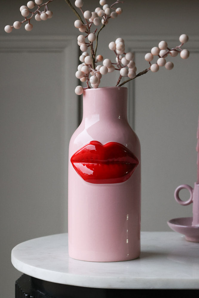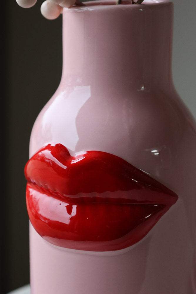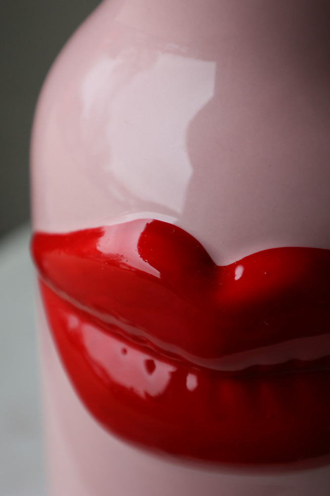 About The Pink Ceramic Vase With Luscious Red Lips