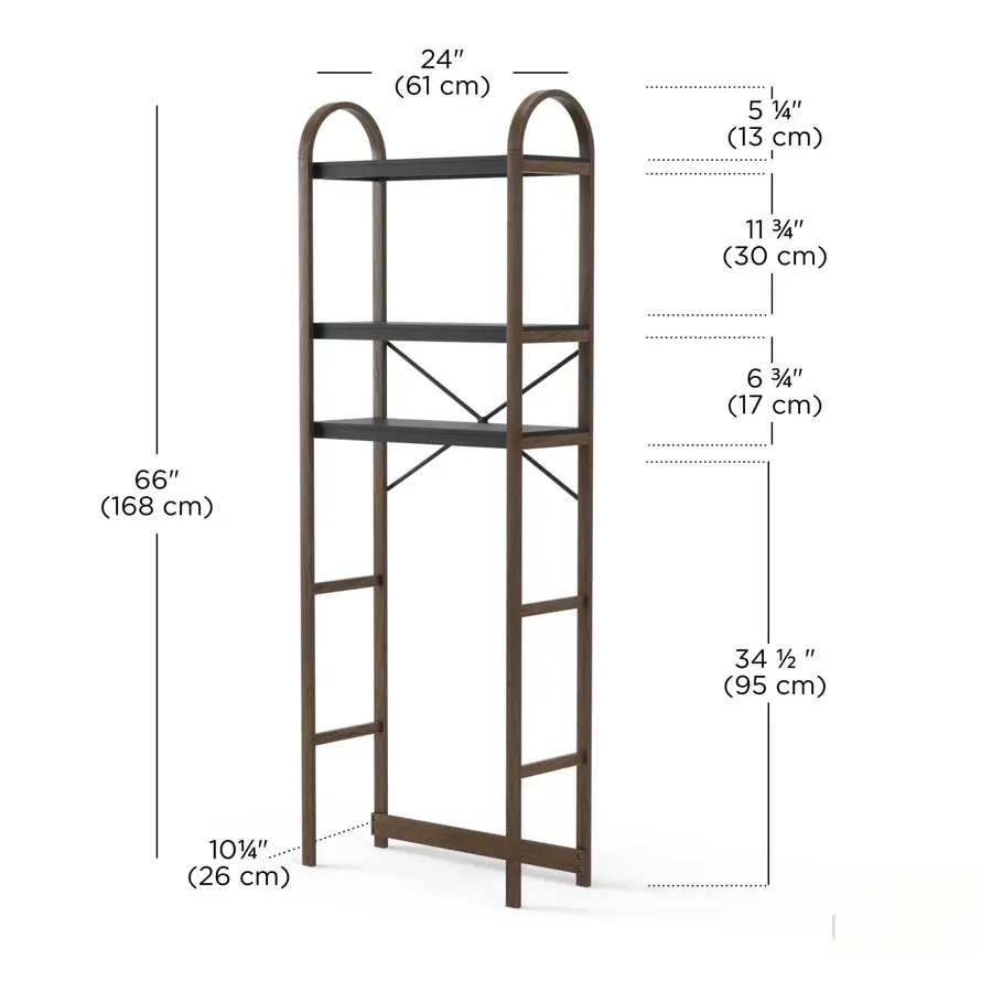 - Space-Saving Storage Solution: Bellwood Over the Toilet Shelf features three wooden tiers and three dowels for elevated storage; holds 13kg (29lbs) per shelf.