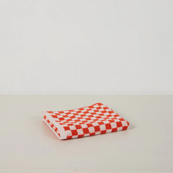 100% Organic Cotton hand towel. Luxuriously soft, in a playful checkerboard, synonymous with the Baina brand. This hand towel makes for a subtle disruption in any bathroom or ensuite. Pairs nicely with the Bethell Bath Towel.